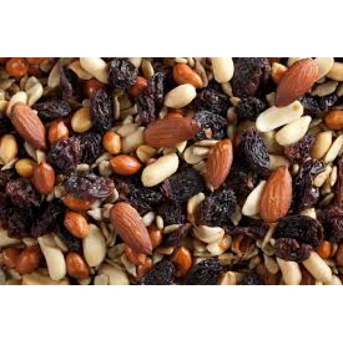Ingrediente: arahide prajite, banane chips (chipsuri de banana, ulei de nuca de cocos, zahar, aroma de banana), stafide (stafide, ulei vegetal), stafide Thompson (stafide, ulei de floarea soarelui), nuci caju, migdale, nuci braziliene, nuci, alune de padure, migdale decojite.